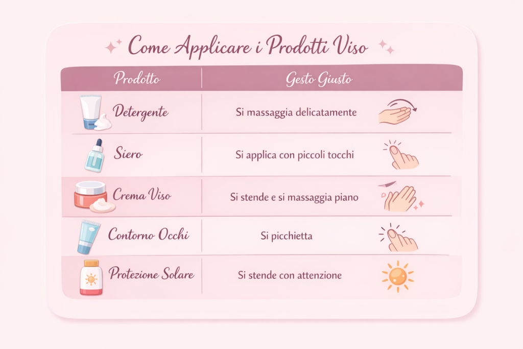 Però c’è un dettaglio che conta tantissimo e che molte persone sottovalutano: il modo in cui applichi i prodotti sul viso.