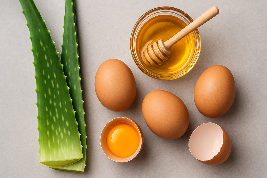 Uovo + Olio d’oliva + MieleUovo, olio d’oliva, mieleNutriente e ristrutturante completo