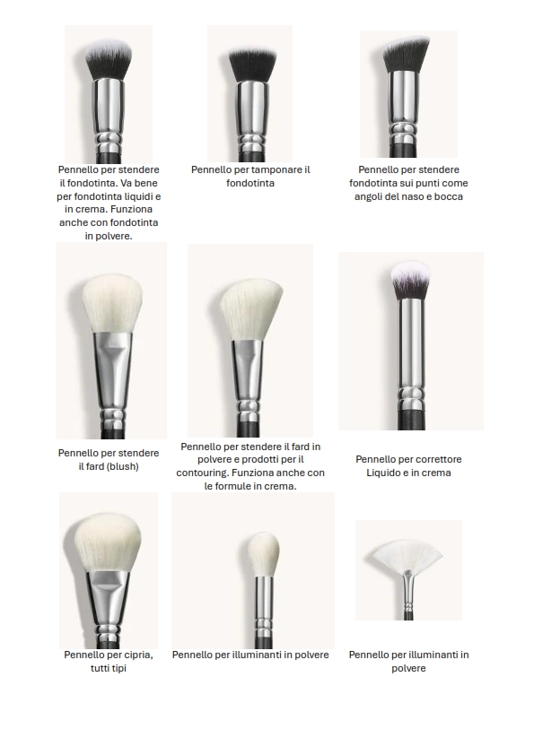 Comunque, visto che ci sono tantissimi tipi e qualità di pennelli che possono confonderci, vediamo insieme a cosa serve ciascuno, dividendo però in tre zone del viso: