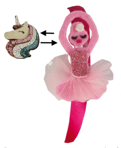 Questo cerchietto ha due figure la ballerina e unicorno, che potete attaccare a piacere.
