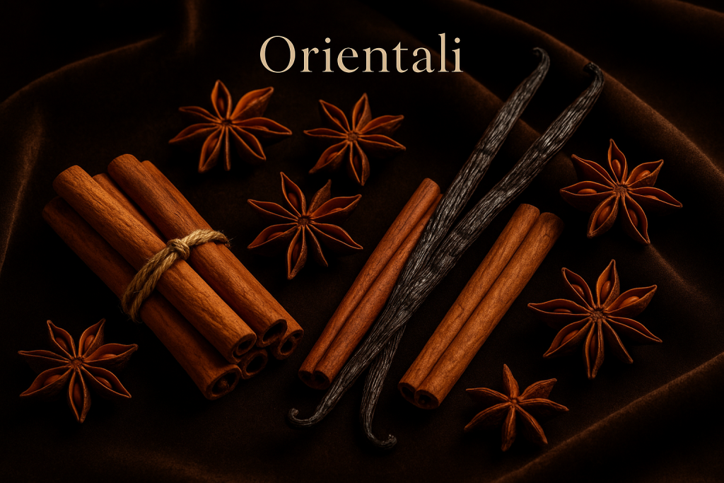 - Orientali: speziate, intense e sensuali. Ottime per la sera e per chi vuole lasciare il segno.